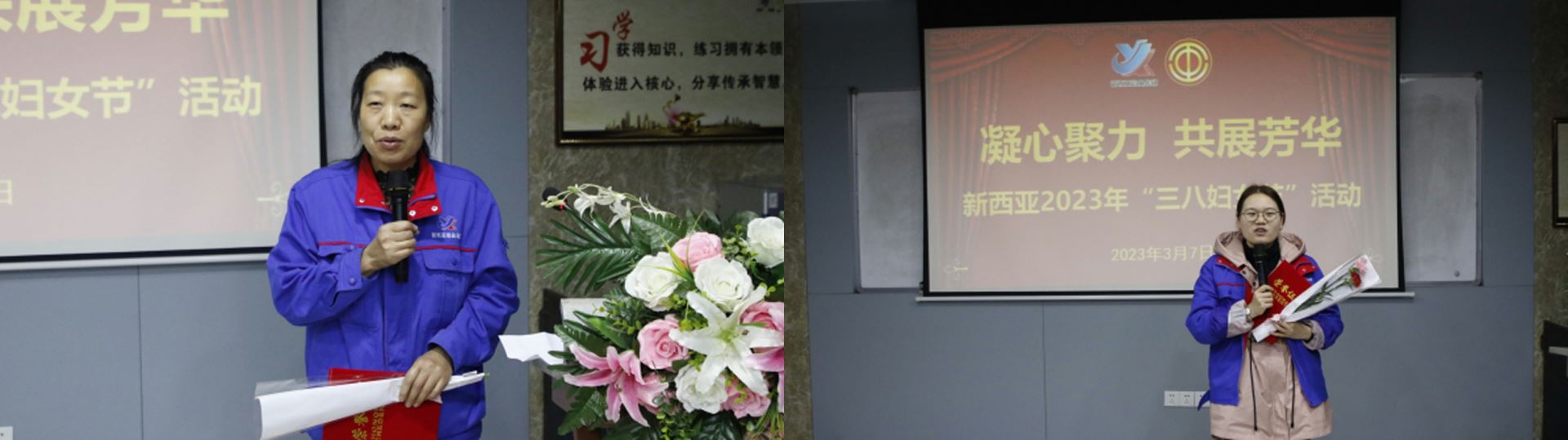 張明容、胡苗苗作為“三八紅旗手”代表分享了感言,她們紛紛表示:能獲得“三八紅旗手”殊榮倍感榮幸,感謝公司領(lǐng)導(dǎo)對工作的支持、鼓勵、信任和肯定。接下來,會把公司的認可和關(guān)愛轉(zhuǎn)化為工作的動力,全身心投入新一年的目標任務(wù),在崗位上建功立業(yè),展現(xiàn)藍黛巾幗的風(fēng)采擔(dān)當。
