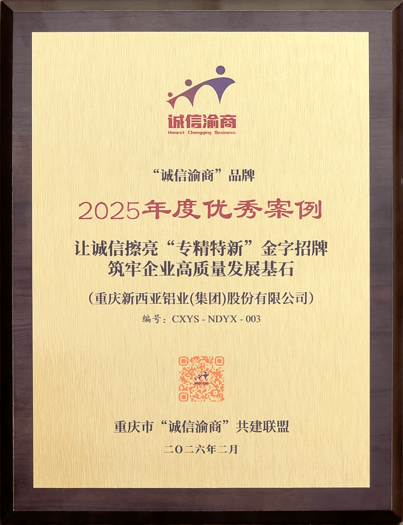 兩項殊榮的獲得,是新西亞鋁業(yè)集團發(fā)展歷程中的璀璨一筆,更是邁向高質(zhì)量發(fā)展的新起點。未來,新西亞鋁業(yè)集團將繼續(xù)秉持“以誠鑄魂,向新而行”的理念,以合規(guī)為舵、誠信為帆,持續(xù)深化誠信體系建設(shè),擦亮“誠信渝商”金字招牌,為重慶民營經(jīng)濟的騰飛貢獻堅實力量。